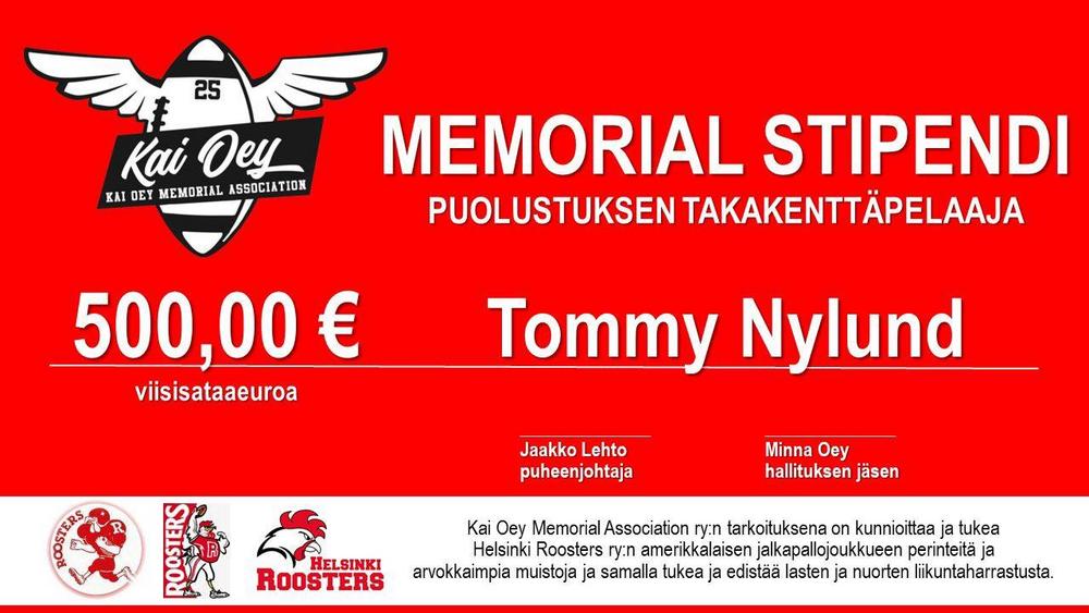 Kai Oey Memorial Association ry* jakoi torstaina 24.8. 2023 ensimmäisen 500 €:n stipendin Roostersin nuorelle takakenttäpelaajalle, Tommy Nylundille . Stipendi jaettiin ottelun jälkeisessä palkintojen…