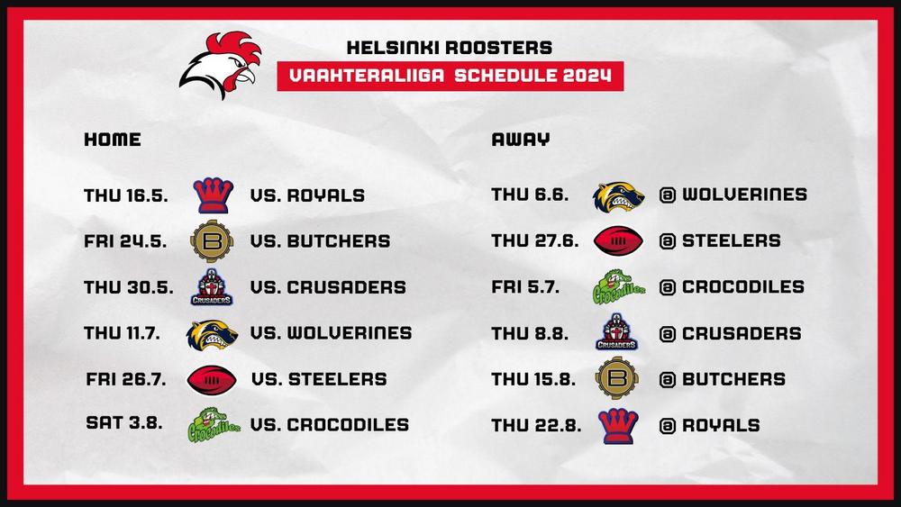 Roostersin kauden 2024 peliaikataulu on julkaistu